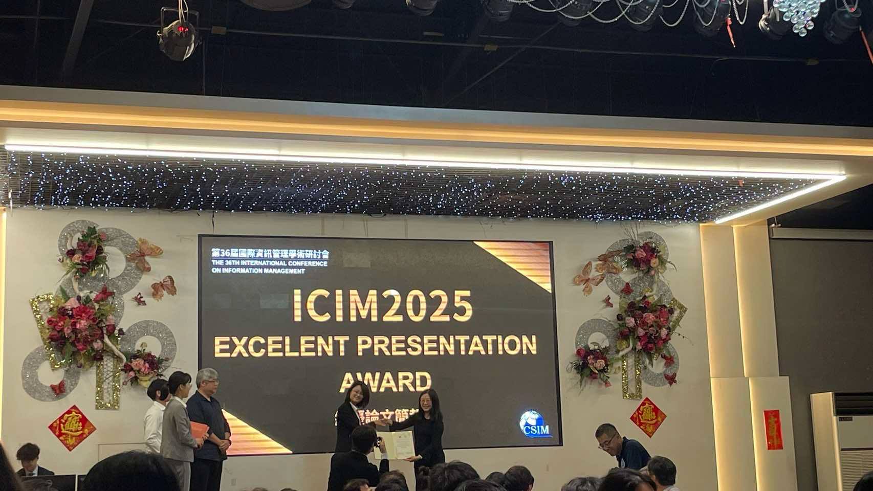 恭喜高大資管研究生江芬妮獲得ICIM 2025最佳論文報告獎!!
